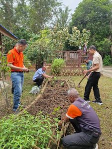วันที่ 12 ธันวาคม 2567 เวลา 09.30 น. ณ บ้านพักนายอำเภอชัยบุรี จังหวัดสุราษฎร์ธานี นายชยันต์รัฐ รุ่งโรจวรารักษ์ นายอำเภอชัยบุรี พร้อมด้วยหัวหน้าส่วนราชการ นายกองค์การบริหารส่วนตำบล ผู้ใหญ่บ้าน และเจ้าหน้าที่อำเภอชัยบุรีร่วมน้อมนำแนวพระราชดำริของสมเด็จพระกนิษฐาธิราชเจ้า กรมสมเด็จพระเทพรัตนราชสุดาฯ สยามบรมราชกุมารี สู่ปฏิบัติการปลูกผักสวนครัว เพื่อสร้างความมั่นคงทางอาหาร กิจกรรม kick off “ผู้นำต้องทำก่อน” ซึ่งหัวหน้าส่วนราชการ ผู้นำท้องถิ่น/ท้องที่ และ 7 ภาคีเครือข่ายการพัฒนาร่วมกันปลูกผักสวนครัว ผักพื้นถิ่น พืชสมุนไพร และผลไม้ จำนวน 30 ชนิด ในแปลงผักรอบๆบ้านพักนายอำเภอชัยบุรี เพื่อคุณภาพชีวิตที่ดีและมีความมั่นคงทางอาหาร (Good&Food Security) และสานพลังความต่อเนื่องในการสร้างความมั่นคงทางอาหารอย่างยั่งยืน ในการนี้ นายอำเภอชัยบุรีได้สาธิตการทำเมนูสุขภาพจากผักพื้นถิ่น “แกงกะทิไข่เป็ดใบชะพลู” ซึ่งใบชะพูมีคุณสมบัติขับลมในลำไส้ บำรุงกระดูกและฟัน แก้ปวดท้อง แน่นจุดเสียด ช่วยเจริญอาหาร ทำให้ระบบหมุนเวียนโลหิตดี รวมทั้งหัวหน้าส่วนราชการได้นำเมนูสุขภาพมาร่วมประกอบอาหารคนละ 1 เมนู เพื่อเป็นการเรียนรู้ และการสานต่อจากรุ่นสู่รุ่น หลังจากนั้นได้ร่วมรับประทานอาหารร่วมกัน